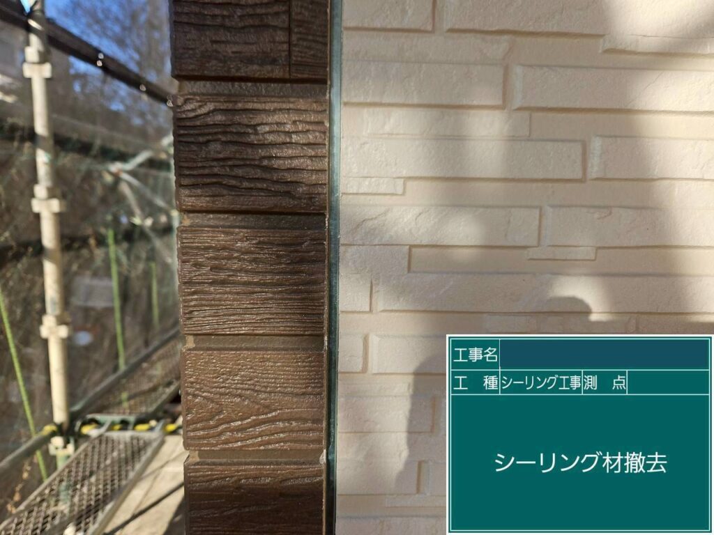 既存の劣化したシーリング材を丁寧に撤去、清掃し、目地をまっさらな状態に戻す工程です。古いシールが残ると新しい材料が密着しにくく、剥離や隙間の原因になります。建物の防水性を確保するため、細部まで確実に取り除き健全な下地へ整えます。