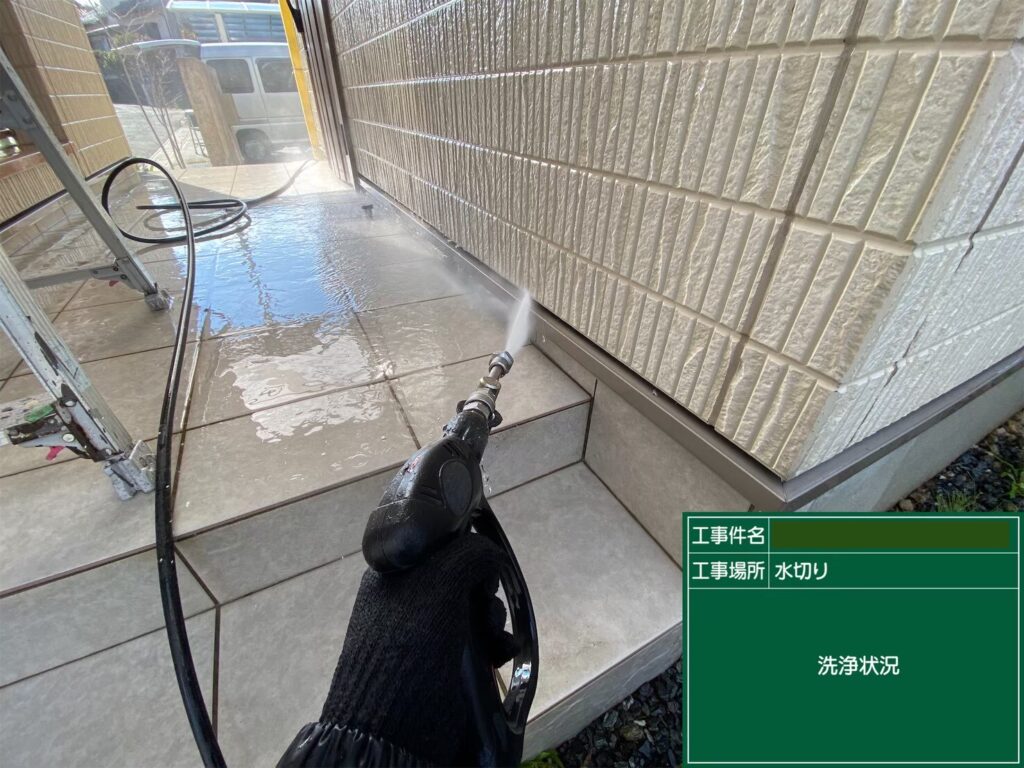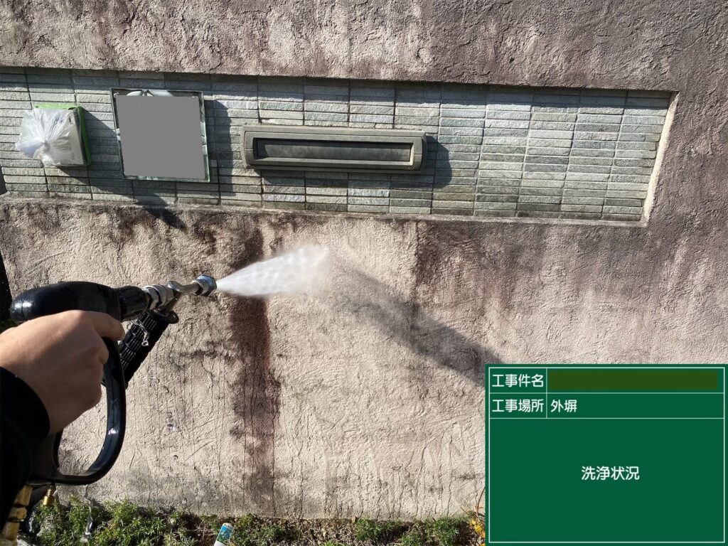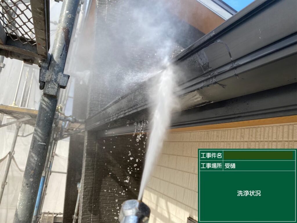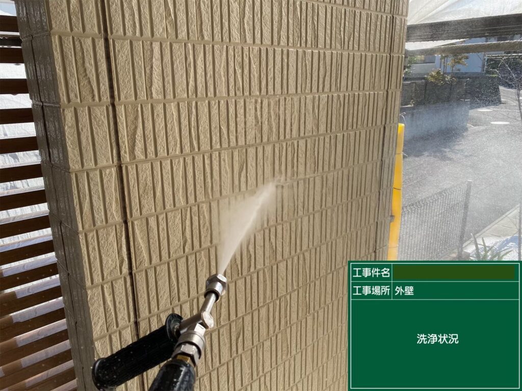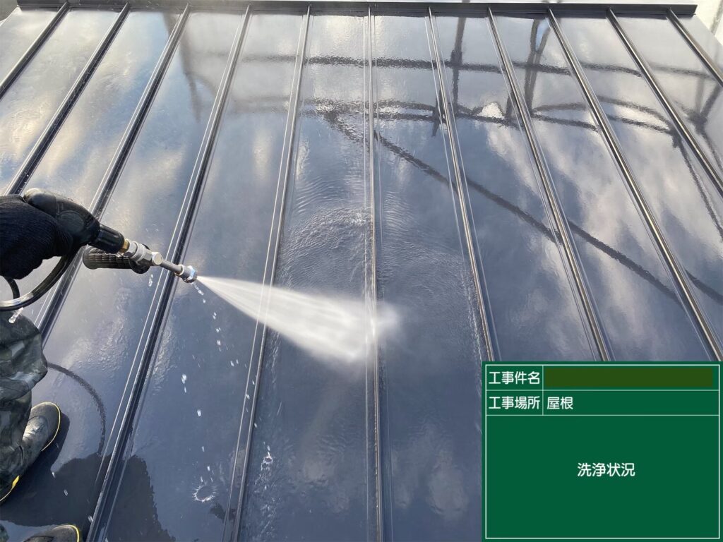 高圧洗浄では、長年の雨風で付着した屋根表面の汚れ・砂埃・苔・藻などを強力な水圧でしっかり除去します。古い塗膜も一緒に洗い流し、新しい塗装が密着しやすい状態に整える、塗装工程の中でもとても大切な下地づくりの作業です。