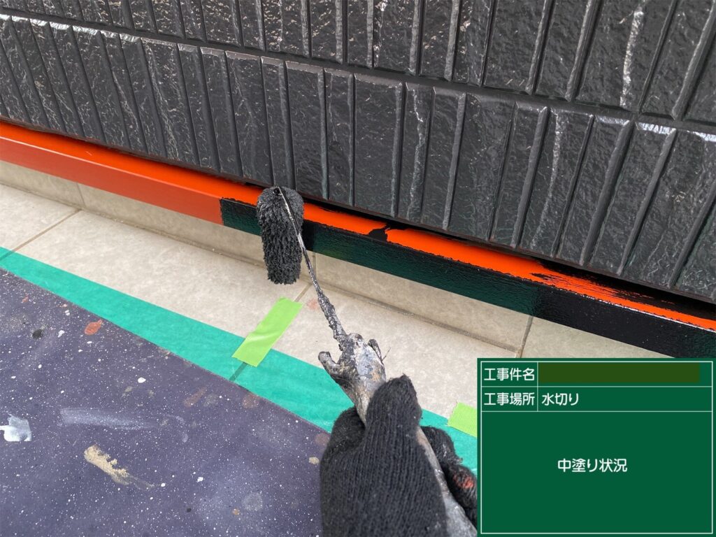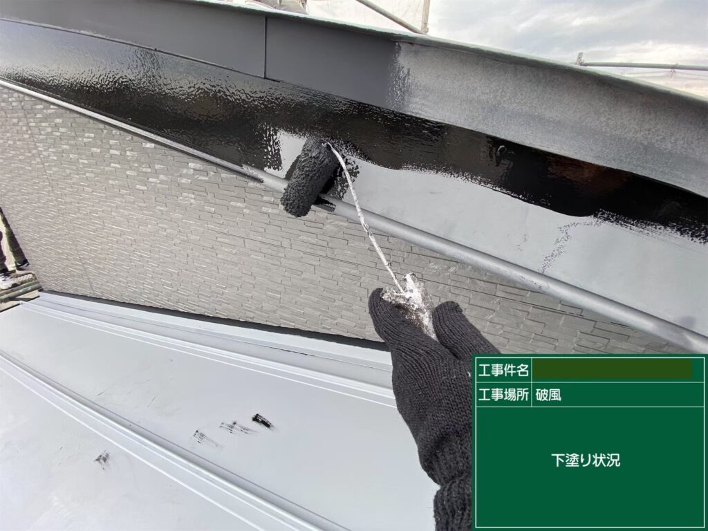 錆止めまでの下地処理を終えて、塗装を実施します。付帯部の塗装も、基本的には2回行います。1回目の塗装で全体に適正な塗膜を形成し、塗装の基礎を固めます。その後2回目の塗装で塗膜に厚みを作り、美観と耐久性、塗膜性能を最大限に引き出す塗装に仕上げていきます。