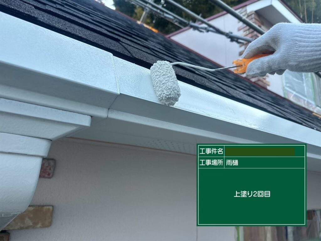 付帯部の塗装も、基本的には2回行います。1回目の塗装で全体に適正な塗膜を形成し、塗装の基礎を固めます。その後2回目の塗装で塗膜に厚みを作り、美観と耐久性、塗膜性能を最大限に引き出す塗装に仕上げていきます。