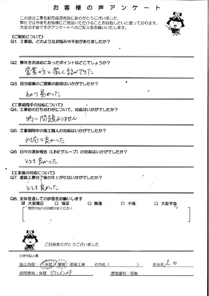 ・塗装完了後の仕上がりはいかがでしたか?