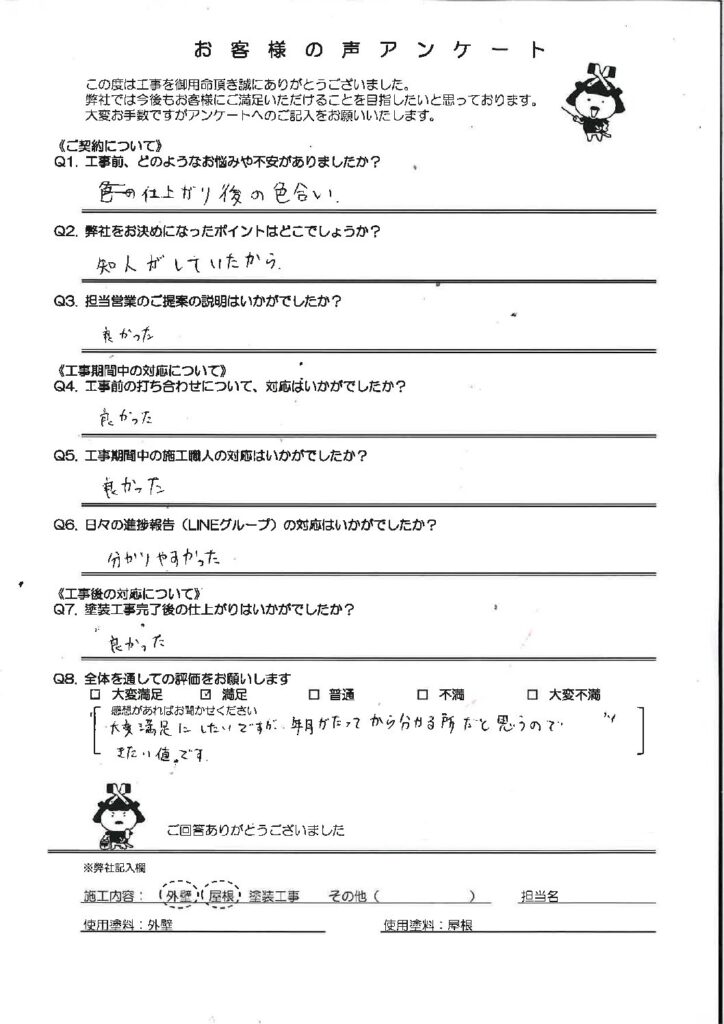 ・塗装完了後の仕上がりはいかがでしたか?